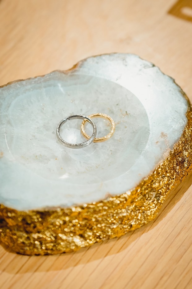 でも最近はトレーやアゲート(メノウ)などのプレート状のものにシンプルに乗せるだけのタイプが、おしゃれな花嫁さんたちに大人気なんです。