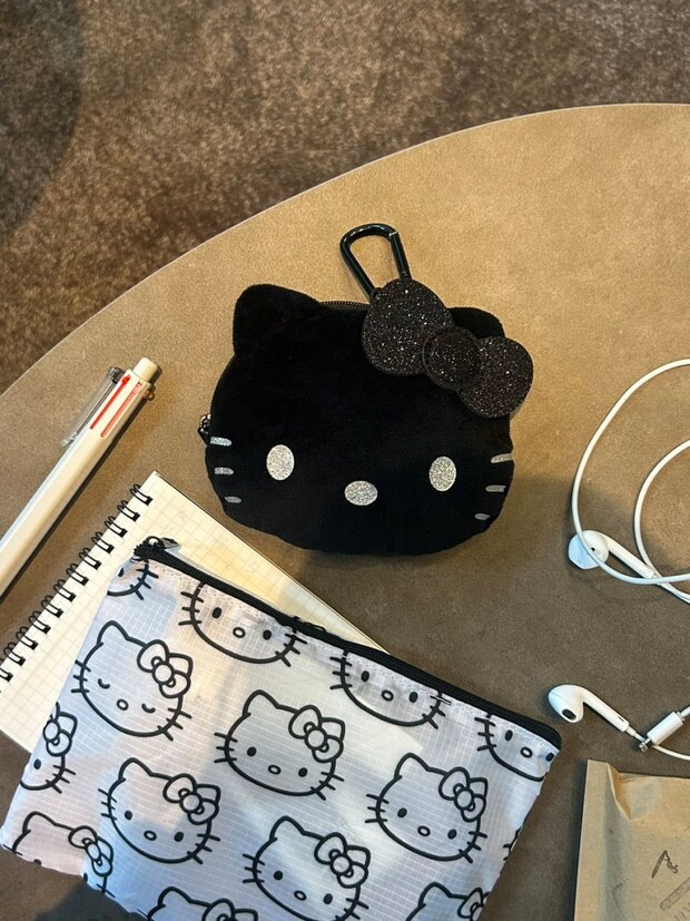 オトナミューズ1月号の付録は、ハローキティの仕様が異なるポーチが2個セットに。ひとつはブラックのふわふわフェイス型ポーチ。ぬいぐるみのような存在感のあるポーチは、カラビナ付きなのでバッグチャームとしてぶら下げて使うのがオススメです。想像よりしっかり入りますよ! リップなら3本はへっちゃらサイズです。イヤホンや香水、鍵など、使いたいと思った瞬間にサッと取り出したい小物を入れて使ってくださいね。