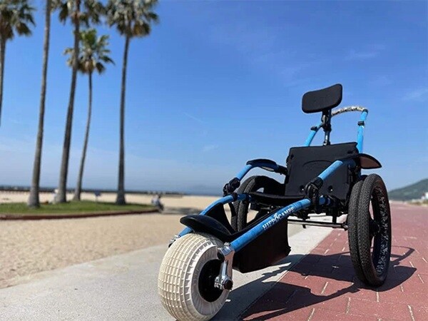 当日は、アウトドア用の車いすに加え、砂浜や不整地でも走行可能な特殊モビリティ「マウンテントライク」などを展示。試乗体験もできる。