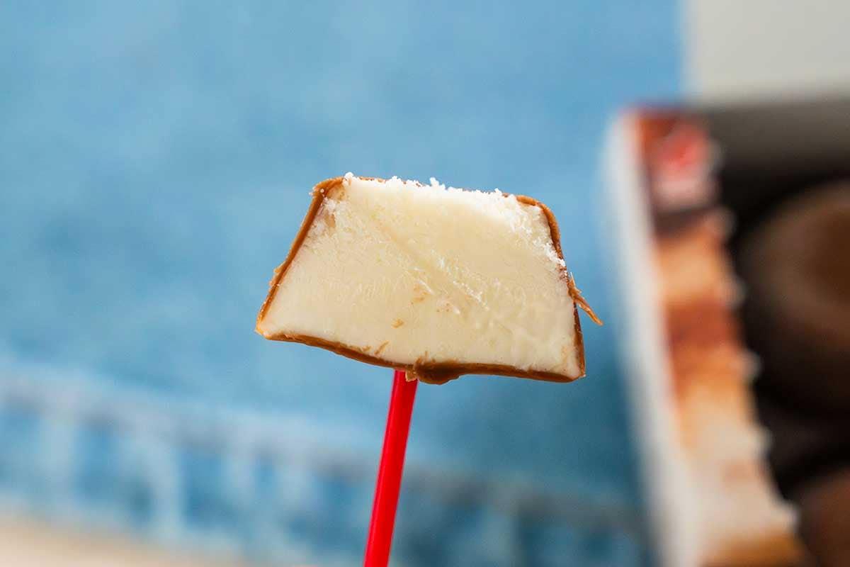 くちどけのよいコーティングチョコは、コーヒーの華やかな香りがあり、中のアイスクリームはクリーミーで濃厚な味わいに仕上がっています。隠し味としてほろ苦いココアが香るフレーバーが使われているため、甘みの中にほのかな苦みも感じられ、たしかに本格的なティラミスを食べているような味わいです。これはおいしい!
