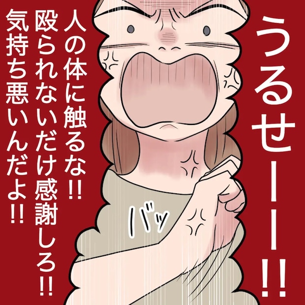 もう我慢の限界だった私は、「うるせーー!!人の体に触るな!!殴られないだけ感謝しろ!!気持ち悪いんだよ!!」と腕を振り払ってそう叫ぶと、