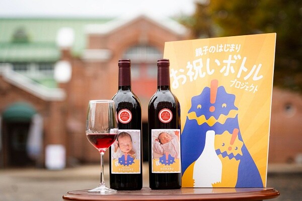 同プロジェクトでは、本格的ワイン醸造場の牛久シャトーと連携し、ワインまたはぶどうジュースを記念ボトルとして贈呈。親子の門出を地域の文化とともに温かく祝っていく。