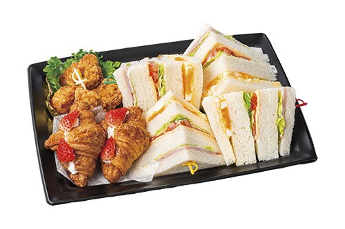 内容:たまご/トマト&チーズ・ハム&たまご/ミニクロいちごサンド/唐揚げ