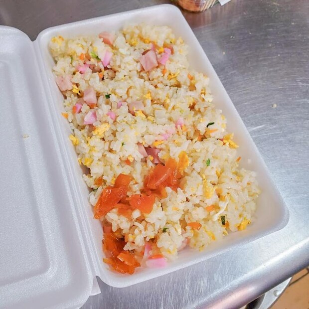 たこ焼き・ちゃんぽん以外のメニューも人気で、業務用ガスコンロの強火力でパラパラに仕上がったチャーハンは、素朴でシンプルな味付け。
