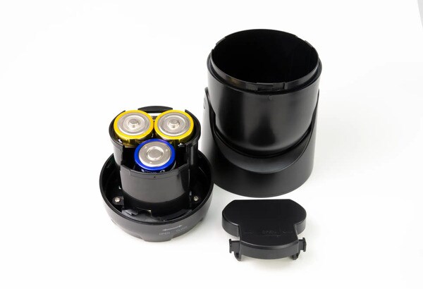 電池は、単1形乾電池×3個(別売)が必要。電池寿命は、一日3回の点灯で毎回1分点灯した場合、約7カ月使用可能(アルカリ乾電池)だが、電池メーカーや種類、環境により使用時間は短くなることがあるとのことだ。