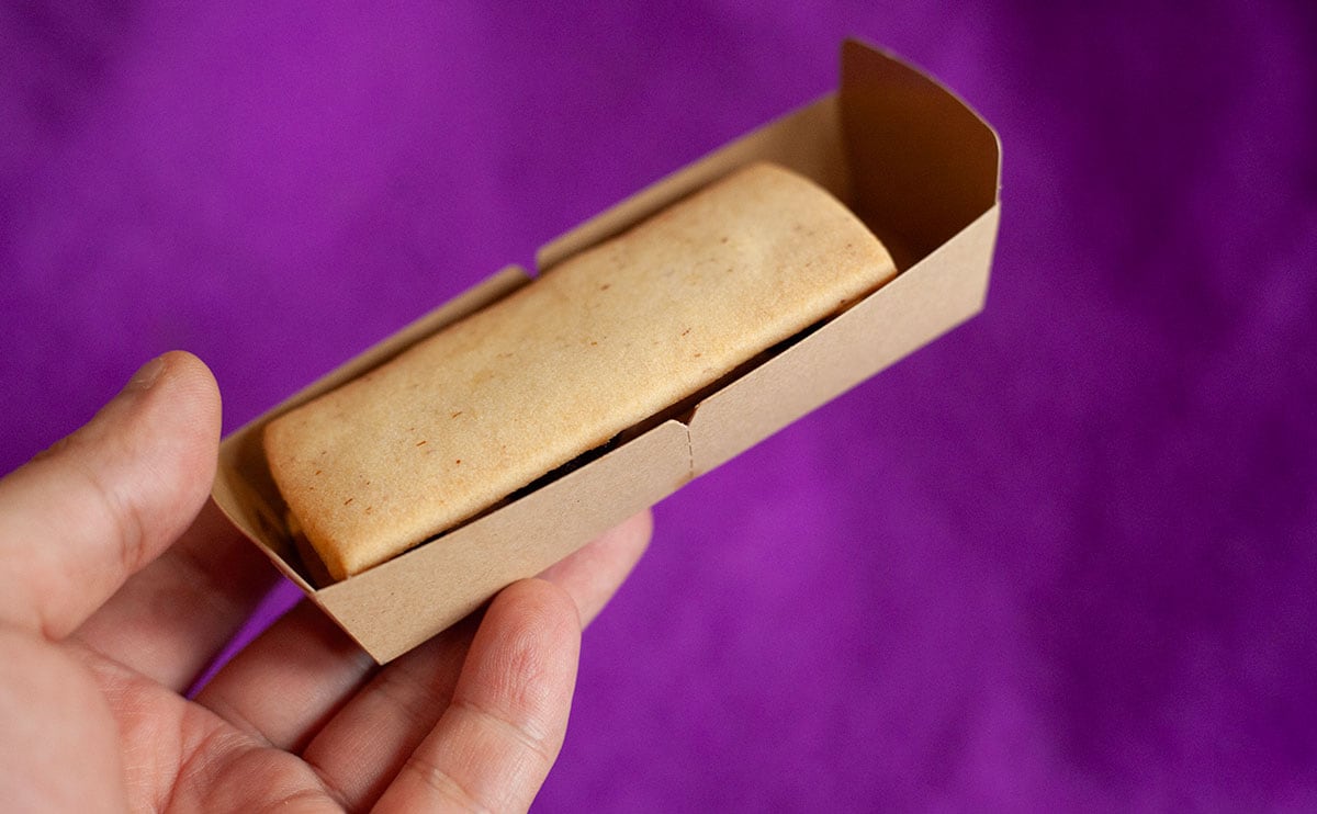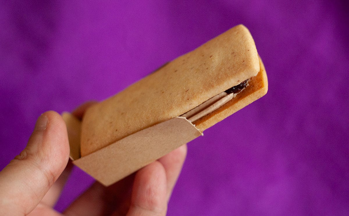 チョコがコーティングされているわけでも、きなこ的なものがまぶしてあるわけでもないので、そもそもあまり気にならないかもしれませんが、直接触れずに食べられるというのは、うれしいポイントですよね。