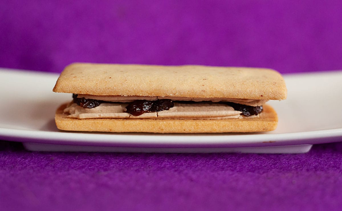 クッキーは、ファミリーマートの言うとおり“サクほろ”ですが、しっとり感もあるから、ぼろぼろこぼれてこないのが地味に助かる……。上品な甘さなので、中のクリームたちを引き立ててくれますよ。レーズンがごろごろ入っているから食感のアクセントにもなり、なんといっても鼻に抜ける香りがたまらない!