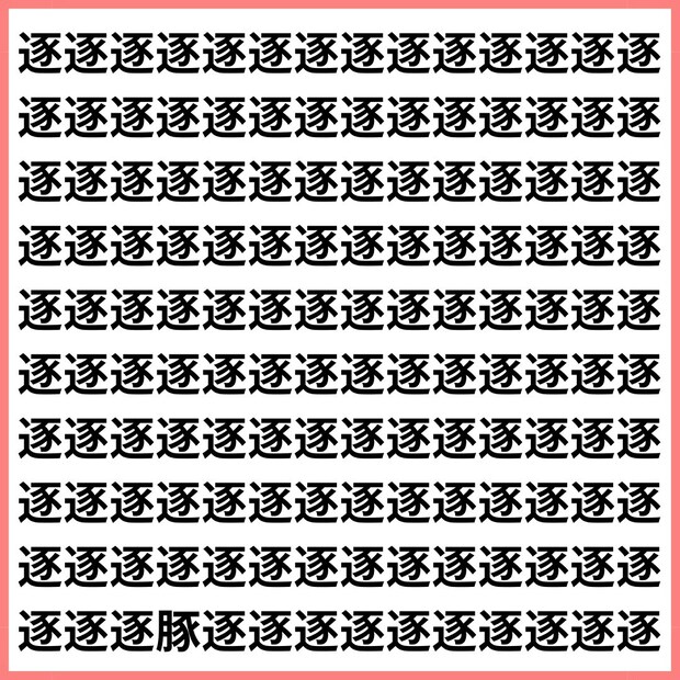 たくさんの「逐」の中に、1文字だけ違う漢字が混ざっています。