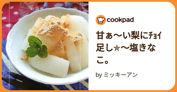 甘い梨に塩ときな粉をちょい足しすることで、ほっとする味わいに大変身。和風スイーツのようなおいしさを楽しめます。