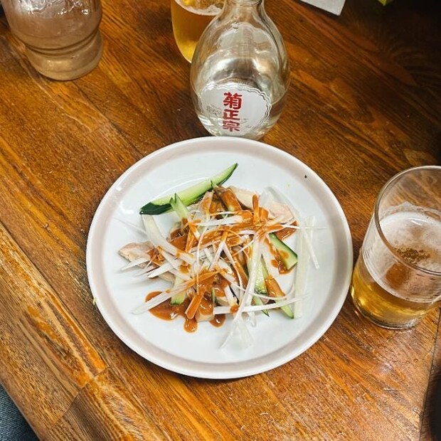 お腹にたまるものをつまみつつ飲みたい2軒目は、「神楽坂在住で知らない人はいない」という「伊太八」へ。「小皿料理が充実している飲めるラーメン屋。瓶ビールはアサヒと書いてあるが、店員さんに言えばサッポ口も出してくれます(笑)」。15:00~翌1:30の営業で、飲みメインも締めのラーメンにも使い勝手よし。