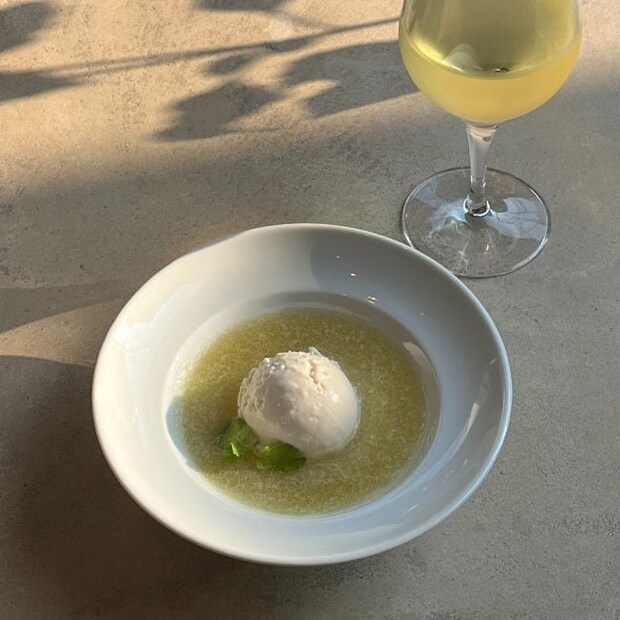 西原にあるアイスクリームとナチュラルワインのお店。「果物やハーブを掛け合わせた独創的なアイスクリームが美味。夕飯前にワインと一緒に楽しむのが定番です」。空間や音楽の選曲もセンスよく、あまりの居心地のよさに「次に予約していたお店の予約時間を忘れて到着ギリギリになったことも(笑)」。