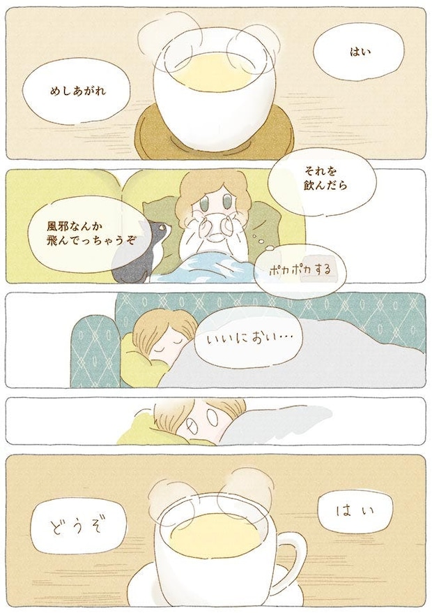 2025年11月26日 風邪をひいて寝込んでしまった夜。お父さんがたまご酒を作ってくれた夢をみて…!?/saudade(18) OZmall 【第18話】|きたかぜこのはをはらう_お父さんのたまご酒(C)よしのくりこ/スターツ出版 無断転載禁止この記事の詳細データや読者のコメントはこちら