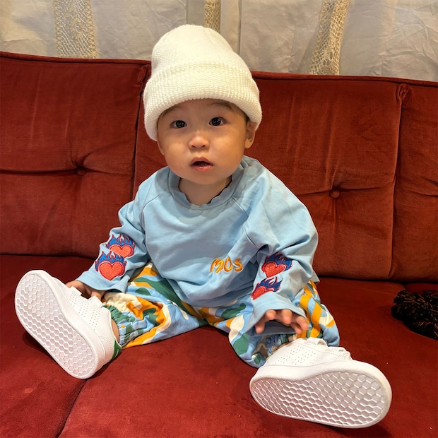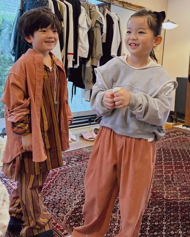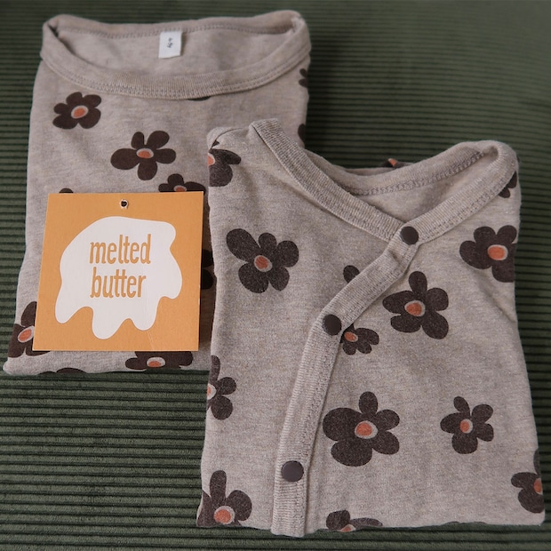 「ずっと欲しかった『メルティッド バター』のアイテムをポップアップでゲットしました! 兄妹ではじめてのお揃いです。男の子が着ても可愛いお花柄は、オーバーオールなどに合わせて着るのがお気に入りのスタイル!」
