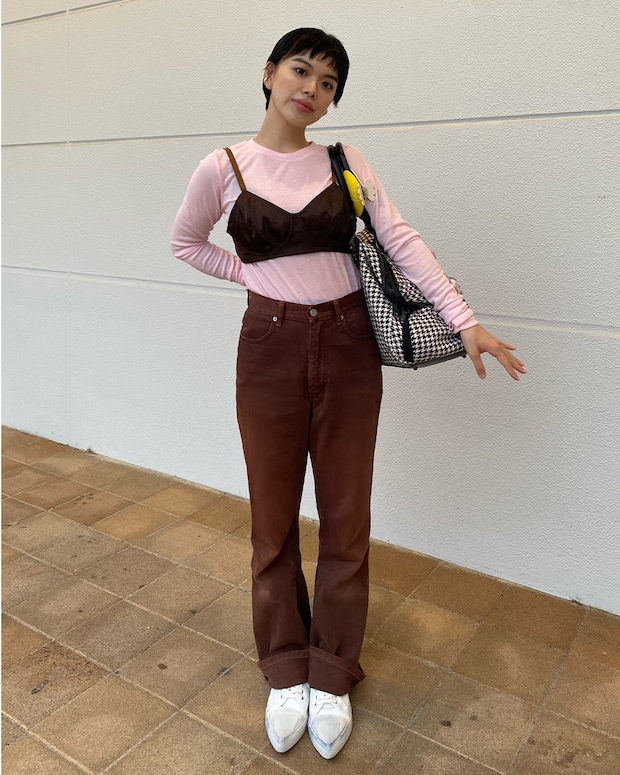 「小花柄が大好きで、ついつい集めてしまっています。ワッフル生地で着心地もよく、何より使い勝手がいい! 1枚で着てももちろん可愛いのですが、薄手なのでレイヤードしやすく、幅広いスタイリングが楽しめます」