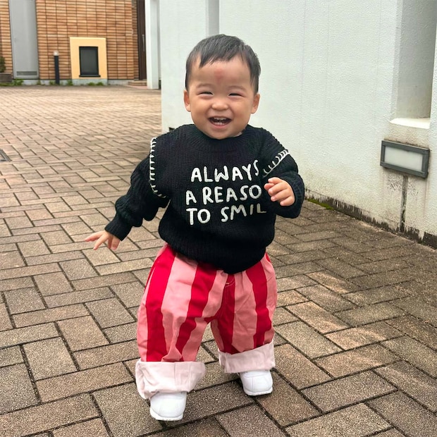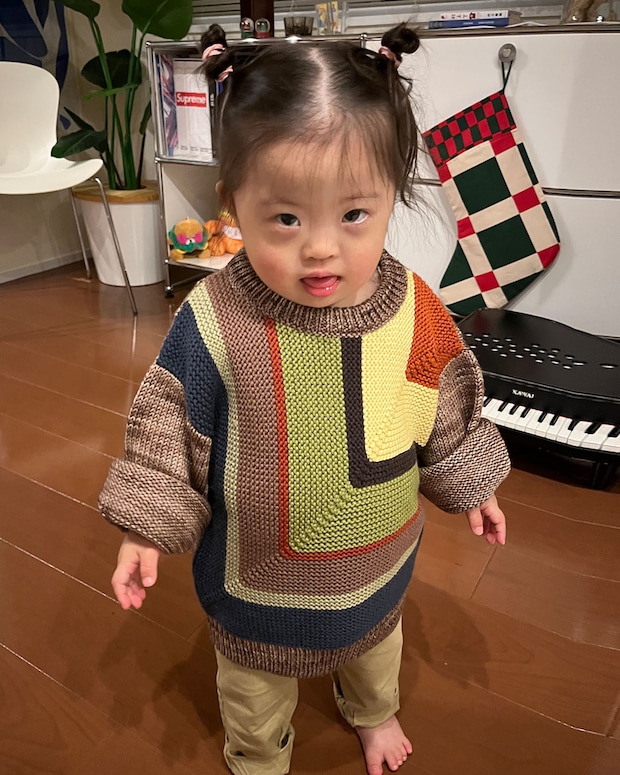 「マルチカラーのデザインが魅力的で購入しました。メリノウールなので肌あたりがやさしく安心して着せられるのも嬉しいポイントです!」