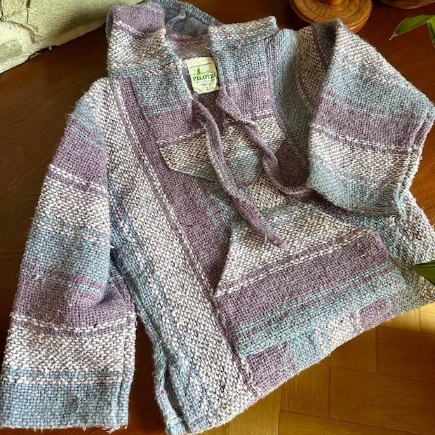 「ヴィンテージショップ『エコード』で購入しました。紫をベースにブルーやホワイトの淡い配色なので、ボトムスの色に迷わず着回しやすいです!」
