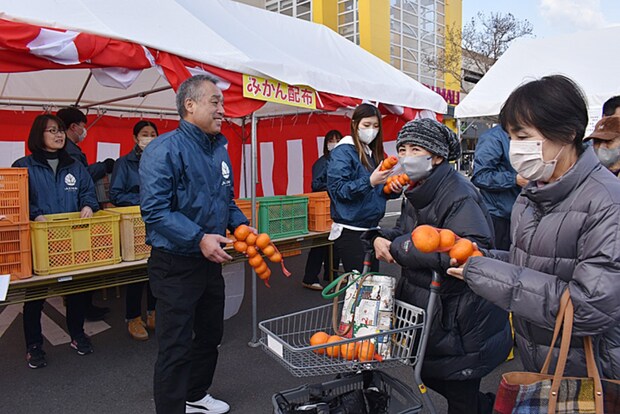 農業まつりでは、毎年恒例の「みかん」や「紅白餅」の数量限定配布を行います!