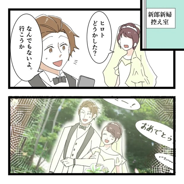 その後、2人は無事に結婚式の日を迎えました。スマホを手に浮かない表情をするヒロトさんが気にかかりましたが、式ではみんなから祝福されアユミさんは幸せでした。