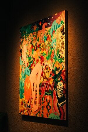 壁面にはMasashi Ozawaさんのアート作品『Women, Flower, Music』も展示されている。