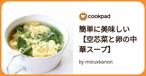 卵のうまみで空心菜がおいしく食べられるスープです。オイスターソースで味付けた溶き卵にマヨネーズを加えることで、ふんわり食感のかき卵に。卵に味付けすることでスープのうまみが増し、少しクセのある空心菜を加えてもおいしく仕上がるそうですよ。