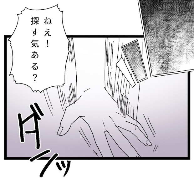 それから時間が経っても何も動いている気配のないタクヤ。私は我慢できず、「ねぇ!探す気ある?」とテーブルを叩いて言いました。