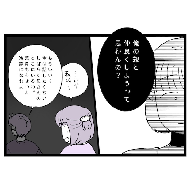 「俺の親と仲良くしようって思わんの?」と言われ、「・・いや私は・・」と言葉に詰まると、「もういい・・今は話したくない。しばらく母さんのとこにいるわ。美月もちょっと冷静になれよ」そう呟いて出て行ってしまいました。