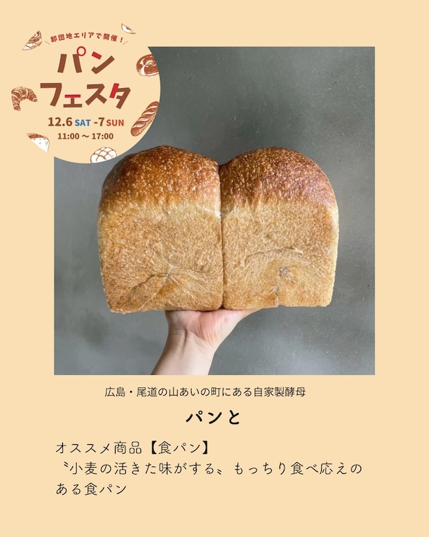12月6日(土)のみ登場するのは、広島の人気ベーカリー〈パンと〉や、愛媛から〈うみとカモメ〉〈KIJIUMA BAGEL〉〈TOU°C〉など。