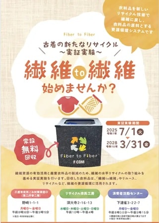 テキスタイルサーキュラーネットワーク(TC-Net)は、東京都三鷹市と連携し、今年7月より、使用済み衣料品を原料として繊維へ戻す「繊維to繊維リサイクル」の実証実験を開始した。