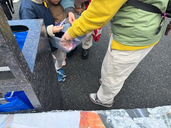 回収協力者にはアップサイクルコースターがプレゼントされた。小さな子ども連れの家庭も多数参加した。