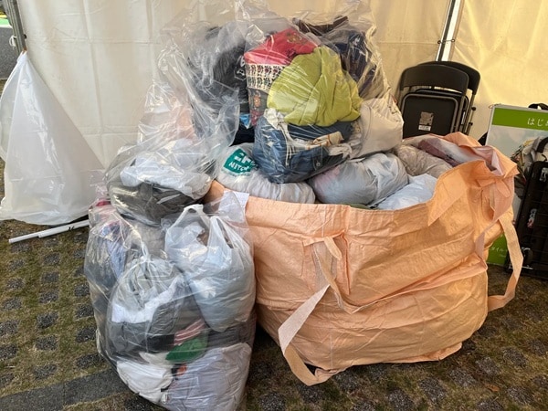 「第13回ふじみまつり」でのワンデー古着回収の持ち込み者は88件、持ち込み重量218kg。市民の関心の高さを示す大量の衣料品が集積された。