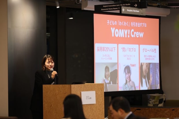 最後に登壇したのは、株式会社YOMYの安田氏です。日本の子供たちの「自己表現力の低さ」という課題に対し、絵本と対話を組み合わせたオンラインスクールを展開しています。ハーバード大学でも研究されている「ダイアロジック・リーディング」という手法を用い、大学生メンター(クルー)が子供たちの「伝える力」を引き出します。受賞後の変化として、海外展開を見据えた多言語対応や、広告運用によるユーザー急増などの実績を報告。「子供たちが国を超えて『好き』を語り合える次世代の教育インフラ」を目指すと締めくくりました。