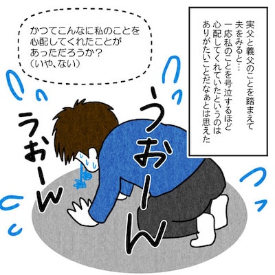 妻がいなくなってしまうかもしれないという状況になって初めて、妻と子どもが一番大事なのだと気づいた夫。泣いてしまうほど大切だと気づき、そのことを妻に伝えられたのは本当によかったですよね。失ってから気づいても遅いということがよくわかるお話でした。