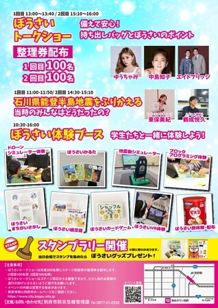 ゲスト講師の大分大学教授・鶴成悦久さんらによる、トークショーや防災体験コーナーが企画されている。
