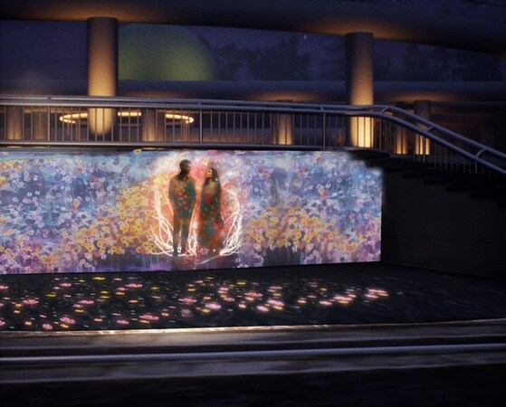 『彩りのひかり(NATURE SIGNALS)』では、フォトブースで撮影した写真のシルエットに様々な花や花の色彩が重なりプロジェクションマッピングとして投影される。