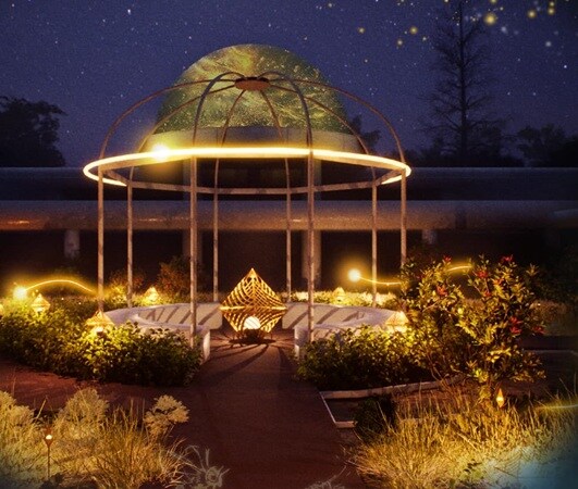 植物の成長をイメージした『つながりの庭(TOUCH GARDEN)』では、人の動きに反応して光と音が変化し、自然との“共鳴”が体験できる。