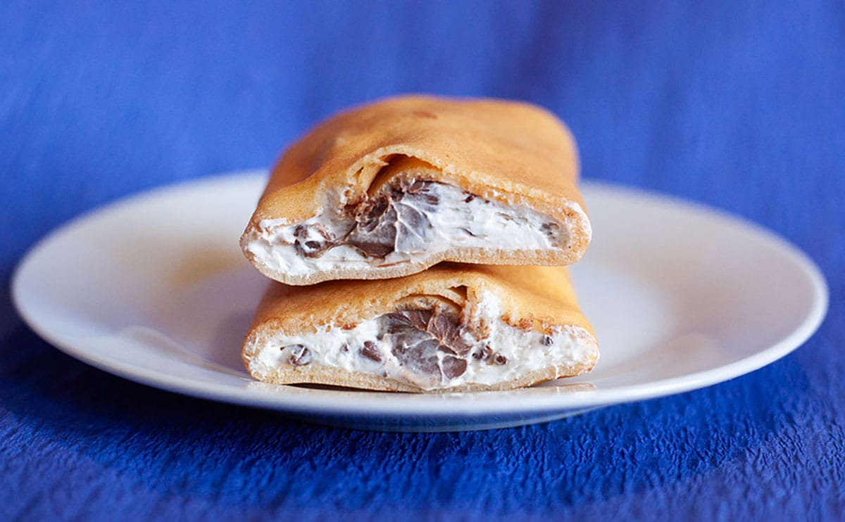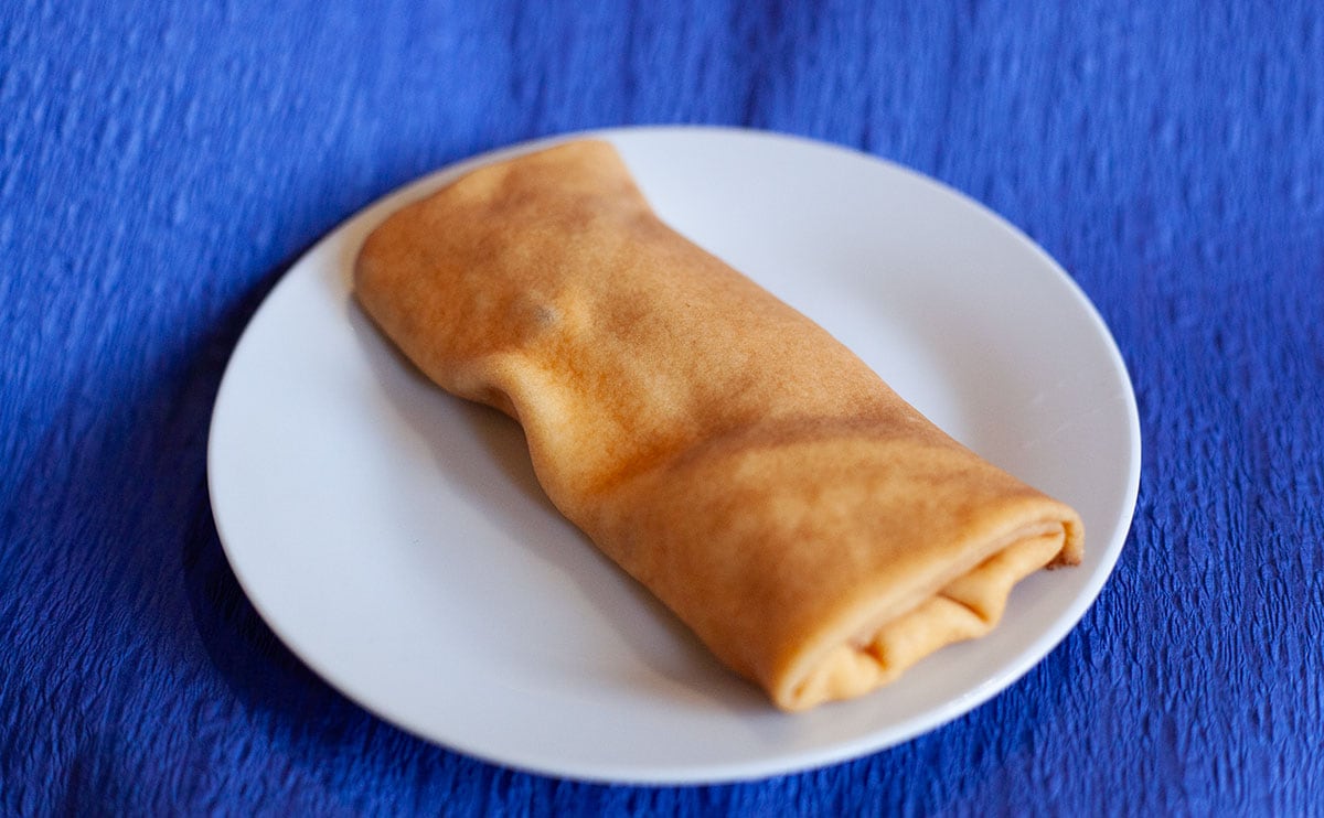 本当はそのまま食べてしまいたいところでしたが、観察しやすいように皿にのせました。春巻みたいな見た目ですが、生地が薄いから破れてしまいそう。