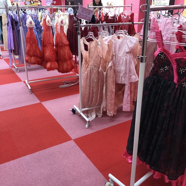 こちらは女の子必見!カラー豊富なドレスが並んでいます。