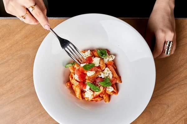 ランチメニューは、京都上賀茂産有機野菜のポタージュと進々堂のパンと、シェフズパスタだ。