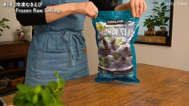 殻や背ワタは取り除かれており、面倒な工程を飛ばしてすぐに使えるありがたい商品です。今回、TastyTimeさんは尾つきを購入。尾なしもあるので、購入する際はよく確認してくださいね。解凍する際は、海水の濃度に近い塩水につけるのがおすすめ。身が縮みにくくプリっと仕上がります。