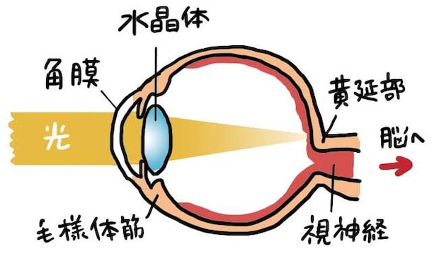 老眼は、目の中の「水晶体」と呼ばれるレンズが年齢とともに硬くなり、ピントを合わせる力が弱まることで起こります。