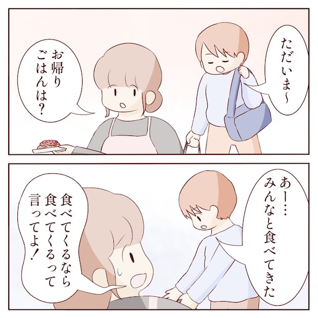 義祖母宅から戻ったヒナさんは、アオくんのお世話と夕食の準備に追われていました。そこへフットサル帰りのリクさんが帰宅。「お帰り、ごはんは?」と声をかけると、「みんなと食べてきた」と目も合わせず言います。家で食べると思ってせっかく用意したのに・・・ヒナさんは困ったように「食べてくるなら食べてくるって言ってよ!」と言いました。