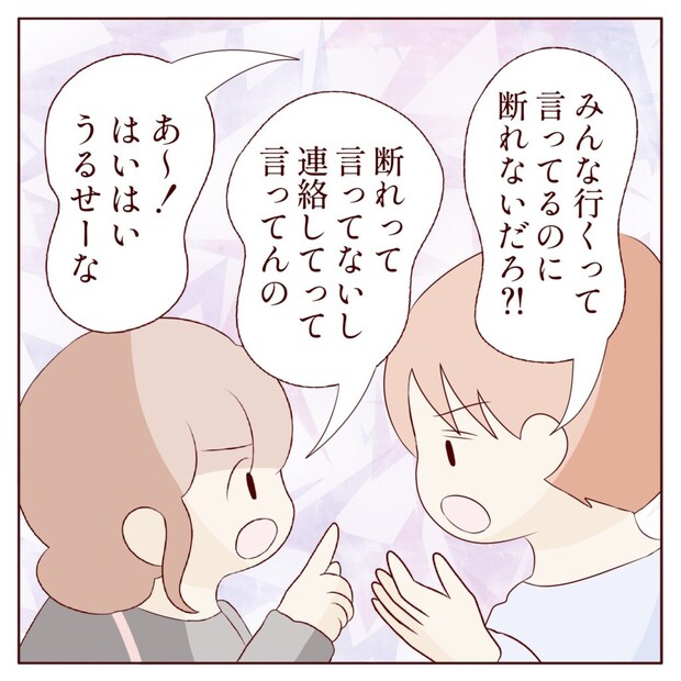ヒナさんの言葉にカチンときたのか、リクさんは声を荒げて「みんな行くって言ってるのに断れないだろ!?」と反論。ヒナさんが「断れって言ってないし、連絡してって言ってんの」と返すと、リクさんは「あ~!はいはいうるせーな」と、子どものように会話を終わらせようとします。
