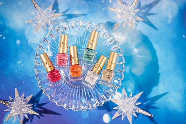 天然ダイヤモンド0.1ctの粉末を使用したオリジナルのネイルカラー「DIAMOND NAIL」(各2,000円)も素敵。なかでも、ゴールドカラーの「オリオンの宝箱」は、ホリデーシーズンにぴったりの華やかさ。