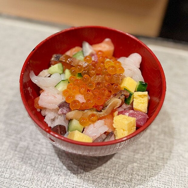 酢飯の上に海鮮がとにかくたっぷり。いくらが大粒なのもたまらないです。魚、穴子、いくら、すべてがおいしい。