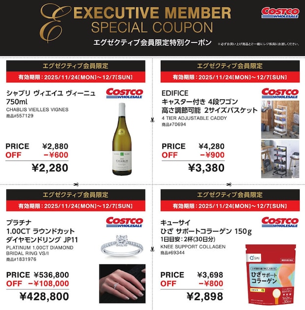 【エグゼクティブ会員向け】11/24~12/7コストコ最新セール・割引情報
