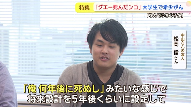 松岡信さん「最後の最後まで全くしんみりしなかったっていうか、ずっと元気でしたね。病院で、ベッドの上ではちょっと弱っていましたけど。それでもこいつ病人かっていうくらいご飯を食べていたしゲームをしていたし友達と話していましたし」