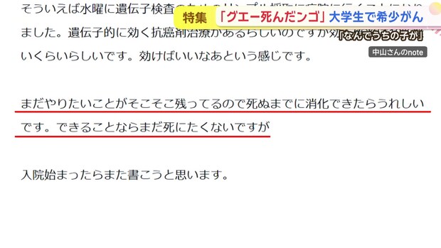 亡くなる直前に、中山さんが予約投稿していたとみられていますが、親しい友人にでさえ、この投稿は伝えていなかったといいます。