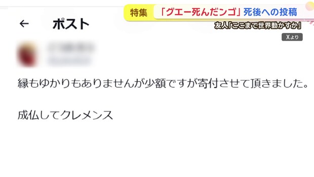 Xには香典代わりなどとしてがんの研究機関に寄付をしたという投稿が相次ぎました。