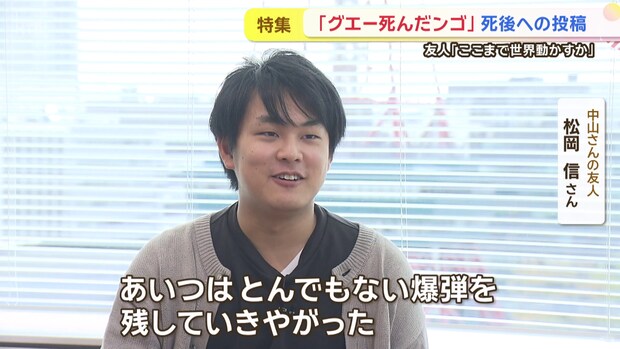 中山さんの友人・松岡信さん「人生で一生出会わない人に出会ったなっていう印象がありました、あのツイートを見たときに最期の最期にやりやがったって」