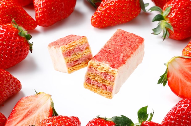 甘みと酸味のバランスが絶妙ないちごクリームをパイでサンドし、ホワイトチョコレートで包んだ。トッピングのいちごパウダーが、華やかな香りと彩りを添える。